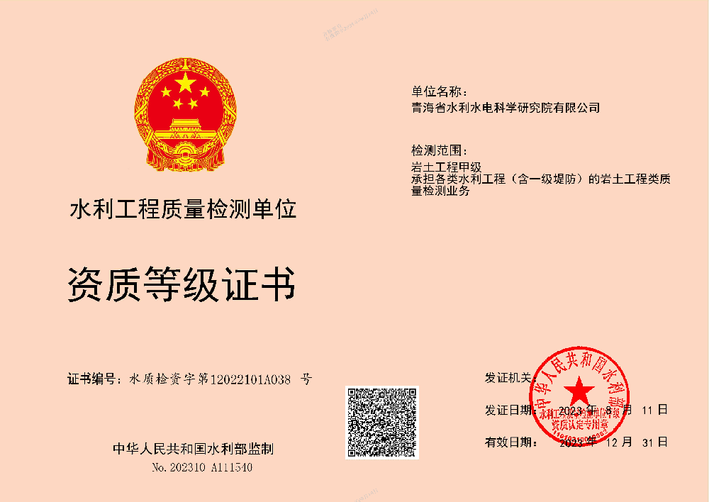 • 水利工程質量檢測單位資質等級證書(巖土工程類)